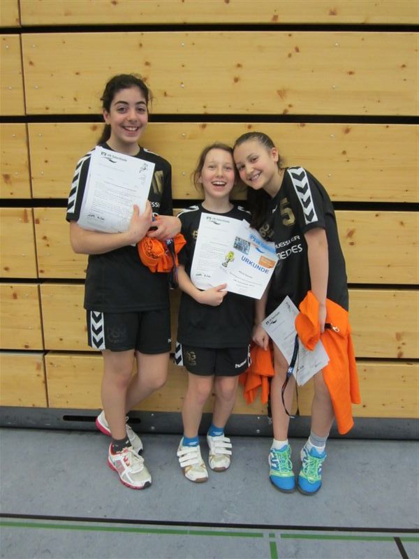 Die Urkunden und Preise nahmen sie freudig entgegen. Immerhin kamen am selben Tag gleich ein paar der Kinder zur Handball AG. Danke an Klaus Bommer und Hans Jäger, die hier immer große Stützen sind!